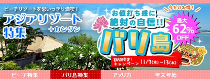 H.I.Sから、『【最大62%OFF】バリ島おすすめホテルキャンペーン』のご案内。