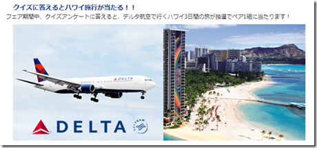 デルタ航空タイアップにより、簡単クイズに答えるだけでハワイ旅行が当たるチャンスです。![]()