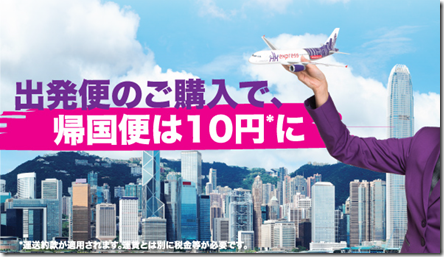 香港エクスプレスから、『帰国便は10円に。キャンペーン』のご案内。
