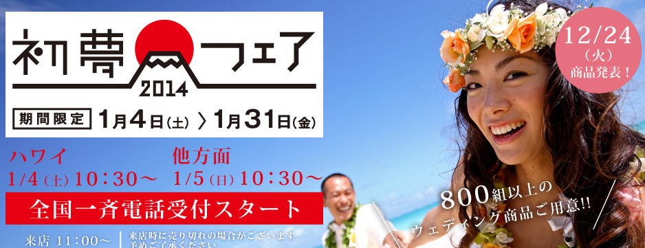 詳細はこちら→『年に1度の大セール・初夢フェア2014・海外ウエディング』