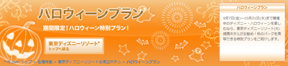 一休より、『 東京ディズニーリゾート®期間限定ハロウィーン特別プラン』のご紹介です。